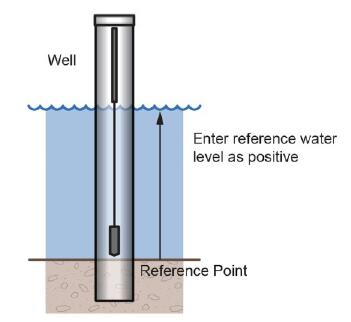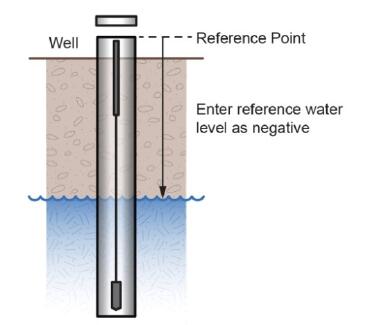 如果水位表面低于參考點,如下所示,輸入HOBOmobile中的參考水位作為負數。