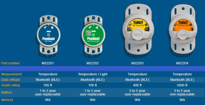 MX2200系列下有4個型號分別是MX2201,MX2202,MX2203,和MX2204,都適用于水下環境監測,分別防水等級是30米,30米,120米,1500米,更詳細聯系HOBO代理商駿凱電子客服。