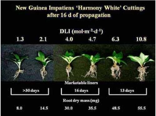 每種作物都有最佳的光強度,可以使光合作用和植物生長最大化。如果光線不足,生長和農作物質量會下降;如果光線過多,盡管保持開燈的代價是光合作用和生長將不會增加。