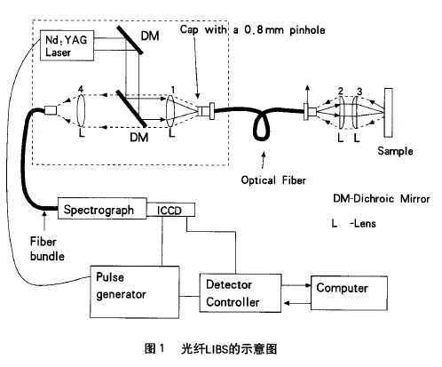 光纖材料的新進展已經為LIBS開辟了許多新的應用領域,通過一個光束傳輸系統,用一根光纖可將激光束送到指定的位置進行遠距離測試。要在固體或液體表面產生等離子體,需要一束很大功率的激光束,所以制造光纖LIBS探針最困難的地方是將高能量的激光束引入光纖但不損壞光纖。