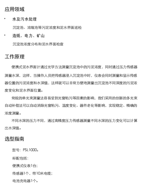 便攜式污泥濃度和界面儀JKPSL系列應用領域:水及污水處理 沉淀池、濃縮池等污泥濃度和界面巡檢