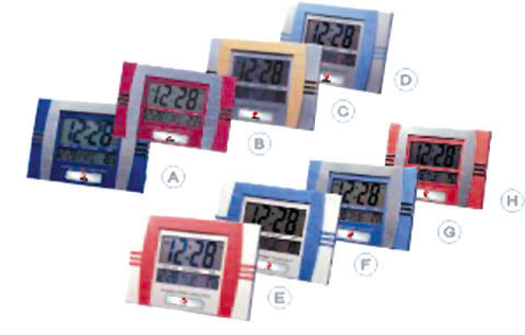 液晶顯示掛鐘,日歷顯示,壁掛式、臺置式,溫度顯示℃/ºF。尺寸:289×190×25(mm)。包裝:彩盒40件/箱。20尺貨柜容量:12320件。40尺貨柜容量:26920件