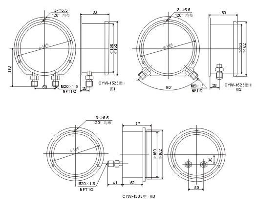 3.外型及安裝尺寸:見圖1、圖2、圖3