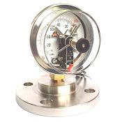 為使電接點壓力表能適應于測量強腐蝕、高溫、高粘度、易結晶、易凝固、有固體浮動物的介質壓力以及必須避免測量介質直接進入通用型壓力表和防止沉淀物積聚且易清洗的場合,應必須采用隔離器與電接點壓力表組成一個系統的隔膜電接點壓力表。適用測量無爆炸危險,強腐蝕、高溫、高粘度、易結晶、易凝固、有固體浮動物的氣體、液體且需對被測(控)壓力系統實現自動控制和發信(報警)的。隔膜電接點壓力表設上下限二位開關型接點裝置,(也可選用三接點或四接點式表頭,依據不同的控制需求,可采用不同的接線方法)在壓力達到設定值時發出信號或通斷控制電路,供作業系統自動控制或發訊用。其隔膜結構可有效隔離強腐蝕、高溫、高粘度、易結晶、易凝固、有固體浮動物的壓力介質,以保證電接點表頭能有效的測(控)系統或機械的工作壓力。隔膜電接點壓力表電接點壓力表特性廣泛應用于機械,化工、石油 冶金、電力,制堿,水處理等工業生產過程或機電配套中測量無爆炸危險的各種流體介質的壓力。通常,儀表經與相應的電氣器件(如繼電器及接觸器等)配套使用,即可對被測(控)壓力系統實現自動控制和發信(報警)的目的。