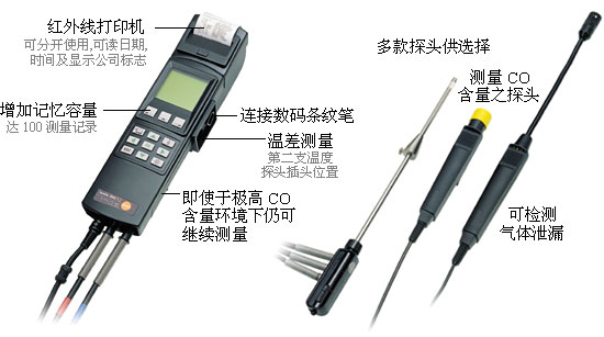煙氣分析儀300XL是熱工行業的理想裝置, 配置完備的測量儀器。它可以測量一氧化碳CO含量及防止氣體泄漏,亦可幫助調節煱爐之溫差。