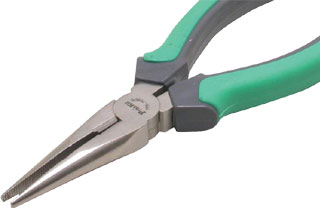 1PK-709DS, 雙色鈦金尖嘴鉗(165mm) [電工剪鉗類]. 全長: 165mm. 雙色防滑大手柄, 握感佳. 鈦金表面處理, 抗銹佳