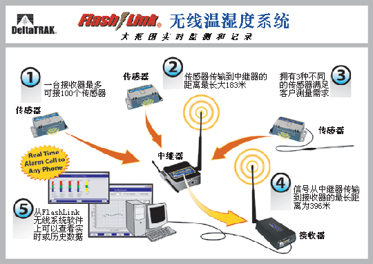 無線溫濕度檢測系統能對大面積的多點的溫度/濕度進行連網監測記錄,利用無線傳輸技術將溫度傳感器或溫濕度傳感器采集的數據直接傳輸到控制中心電腦上進行數據存儲和分析。傳感器能夠任意安裝在所需檢測的地方,如保血庫、保鮮庫、儲藏柜、冰箱、冷凍柜、計算機房、干燥箱等等。傳感器檢測的溫度/濕度數據能自動的傳輸到計算機上,無需人工干涉。系統具有超限報警功能,當溫濕度數據超過設定標準時,系統會自動撥打預先設定的電話號碼。及時通知管理人員進行報警處理。該系統符合FDA 21 CFR Part 11等標準,適合應用于血液中心血庫、食品企業、GMP醫藥廠房、血庫、電子廠房、機房、孵房、溫室等對環境溫濕度要求高的場合。