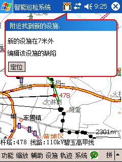 當用戶到達某一些預先指定目標位置的有效距離之內時,巡檢終端系統將自動地向用戶提醒已到達該設施,并提示巡檢人員檢查該設施。
