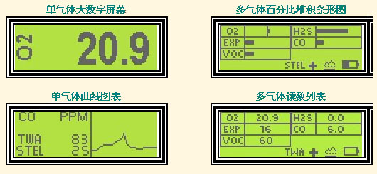 ★ 5種氣體讀數全部同時用百分比堆積條形圖或數字顯示有助于現場的即時評估;