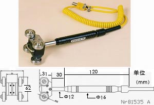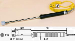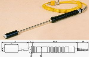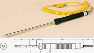 分度號:K、E、J 導(dǎo)線長度:2000㎜ 手柄材質(zhì):電木 使用溫度范圍: -50℃ ~ 600℃ 應(yīng)用:適用于高溫靜止表面。 |