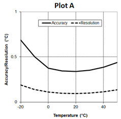 分辨率:0.10 °C在25°C ( 0.18 °F 77 °F ) ,見A地塊