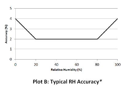 精度:±2%從20%到80%個典型的25°C(77°F),見圖B