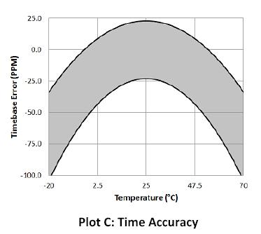 時間精度±每月1分鐘在25°C(77°F),見圖C