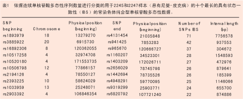 單核苷酸多態性(SNPs)和微衛星一樣可用于遺傳圖譜的繪制。由于基因經常連鎖在一起遺傳,而連鎖的基因并非完全隨機地組成單體型,因此SNPs的內在信息量比微衛星攜帶的信息量要少些。然而協同分析的眾多SNPs所攜帶的信息則類似或多于微衛星。作為人類基因組單體型圖 (HapMap)計劃的一部分,對幾百萬個SNPs進行了基因分型,并提供了幾種不同人種的等位基因頻率[8]。目前,用于SNP的高密度高通量芯片已經產業化,可用于傳統家族性單基因紊亂的基因缺陷的遺傳圖譜繪制。