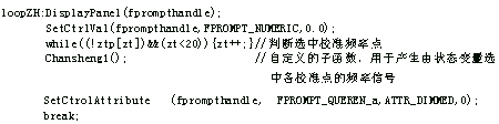 由于對每種儀器校準(zhǔn)時,應(yīng)在不同的頻率點上進(jìn)行校準(zhǔn),而這些頻率點是按照檢定規(guī)程的要求設(shè)定,并存放在數(shù)據(jù)庫中,但實際工作中常常要對這些校準(zhǔn)點作適當(dāng)?shù)娜∩帷_@里實現(xiàn)的方法是:當(dāng)從數(shù)據(jù)庫中讀取校準(zhǔn)點及其允許誤差,并分別存入數(shù)組xiaozhuer11、mcha1中,然后再分別將這兩個數(shù)組中的數(shù)據(jù)分別送到測試面板上的“參考值”和“允許誤差”控件,最后由鼠標(biāo)點取相應(yīng)“狀態(tài)”(變量設(shè)為zt)選擇控件,然后操作并確認(rèn),具體的控制程序如下: