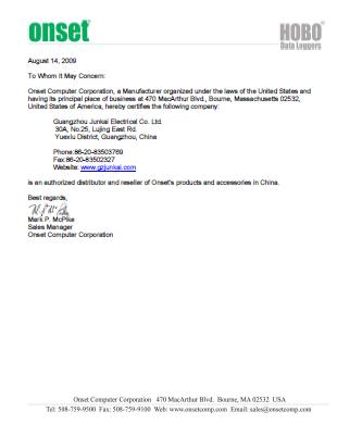 熱烈祝賀廣州市駿凱電子科技有限公司成為美國Onset公司HOBO數據記錄器中國代理商